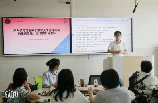 为进一步推进学院师德师风建设,全面提升教师队伍品德修养,持续提升教师思想认识,切实提高教师职业道德素养,营造风清气正的育人环境。乌拉尔学院于4月16日上午,在5-503召开师德师风专题会议。会议由beat365党总支书记蔡家瑶主持,副院长周丽霞、各专业负责人、专任教师及辅导员参加本次会议。