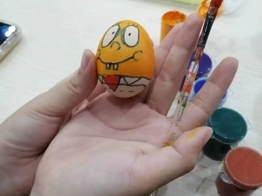 活动伊始,陈青云老师与同学们相互认识,随后发放鸡蛋、颜料和绘画工具,鼓励大家发挥想象,释放心灵,自由创作。听完团辅老师的讲解后,同学们拿起鸡蛋放在掌心,构思设计,想象色彩的碰撞与融合,脸上带着轻松与平静,似乎在与内心交谈,接着开始创作,同学们把自己的奇思妙想描绘在鸡蛋上,一个普通的鸡蛋五颜六色、异彩纷呈的“杰作”就此诞生。