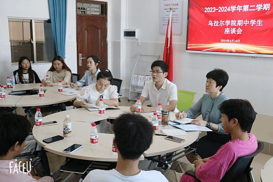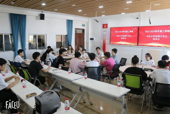 乌拉尔学院党总支书记蔡家瑶、副院长周丽霞出席座谈会,辅导员、教师代表,各班级学习委员、纪律委员参加座谈。