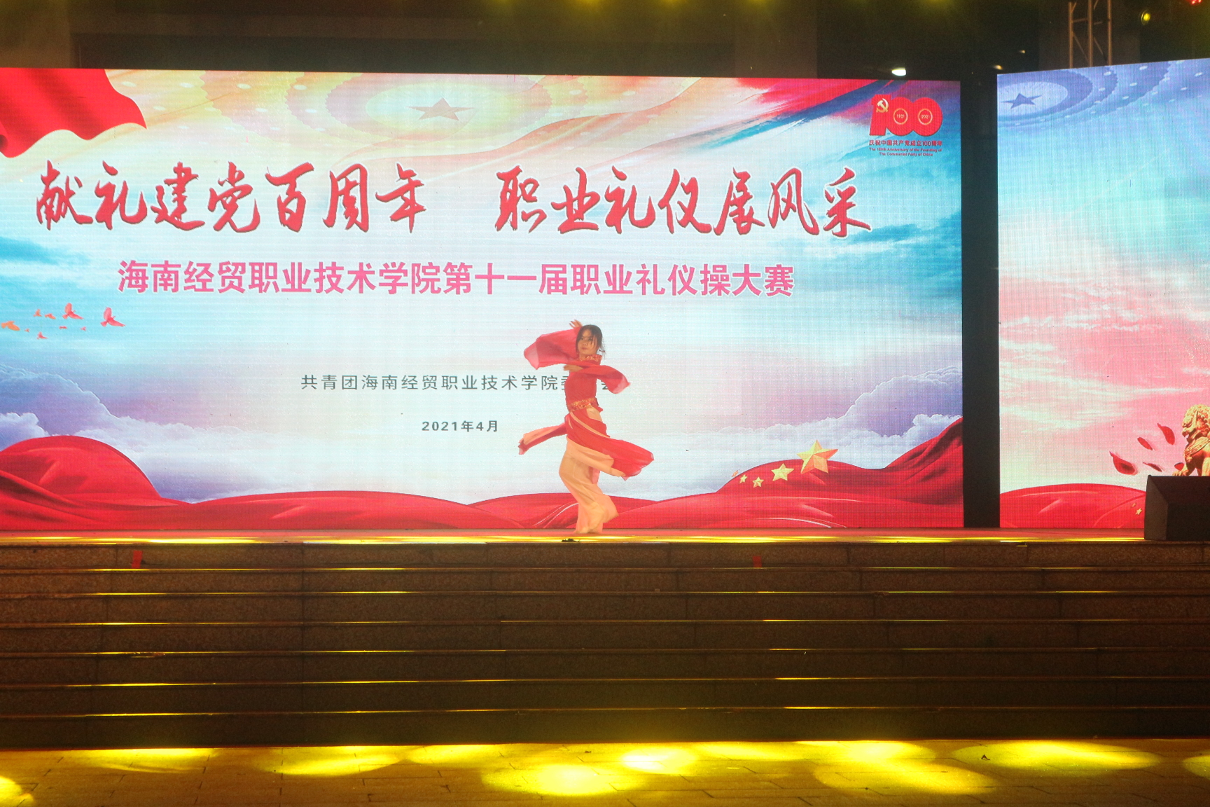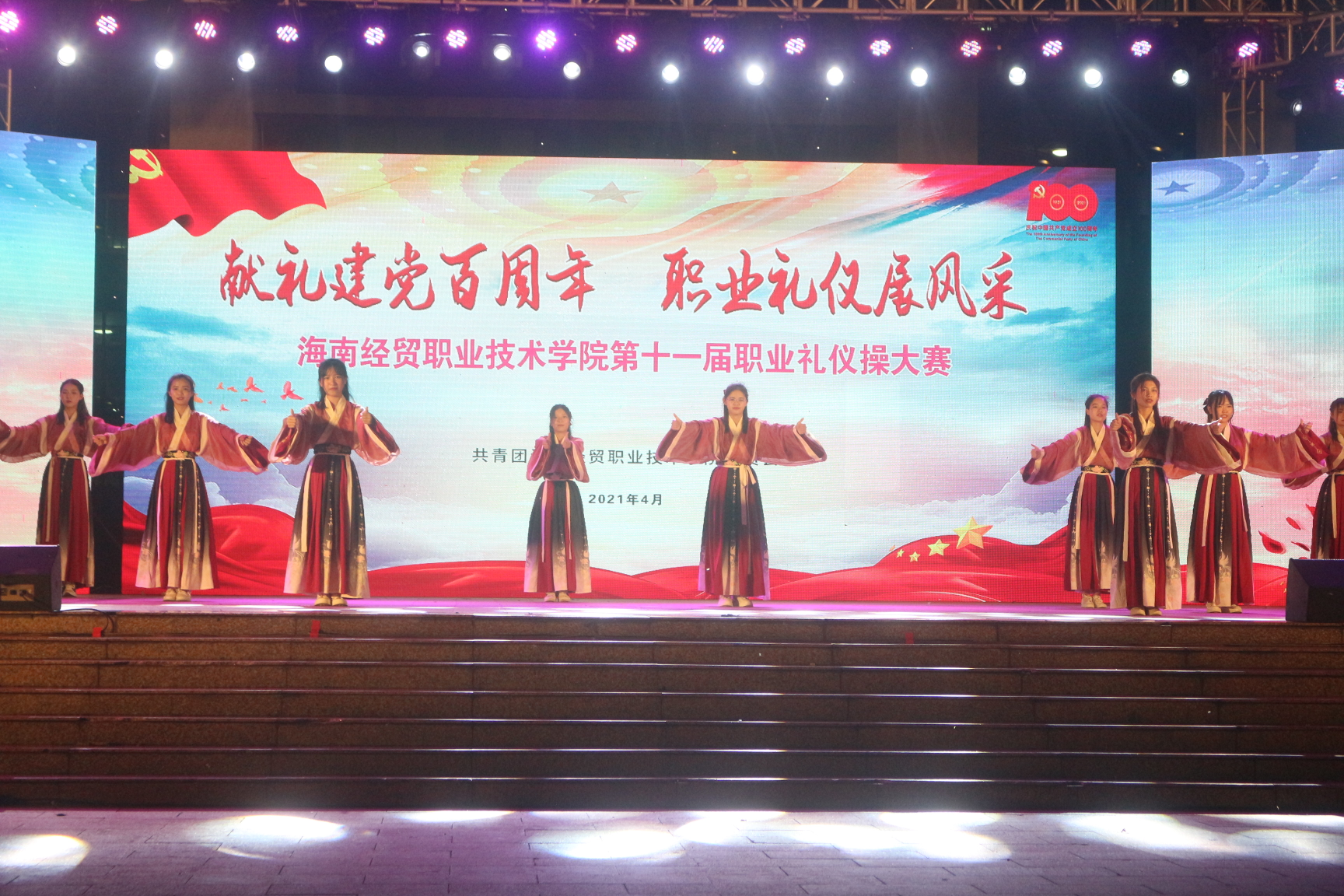 为弘扬我文明礼仪文化,贯彻落实学院“笃学厉能,知行合一”的校训,提高学生各方面的素质。4月27日晚上,海南经贸职业技术学院在经贸广场举办了第十一届职业礼仪操大赛。
