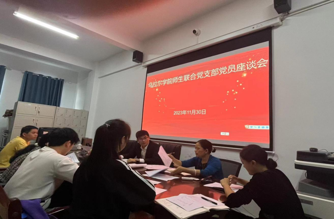 2023年11月30日下午,我院在5-511会议室召开书记讲党课暨师生党员座谈会活动,党总支书记蔡家瑶、师生联合党支部书记陈青云、教师党员代表、学生党员代表参加会议。