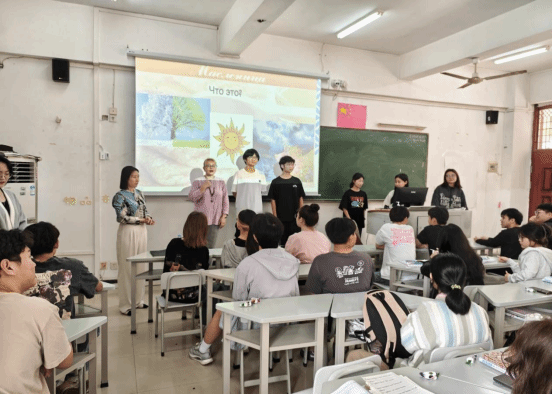 活动现场,焦黄的煎薄饼、酸奶油、蜂蜜等俄式特色美食营造出浓浓的俄罗斯节日氛围。外教们为大家精心准备了图文并茂的节日介绍和组织了抢凳子、摘帽、抢手娟、猜字谜等有趣的游戏互动活动。参加活动的同学们通过亲身参与,加深了对俄罗斯谢肉节这一传统节日的了解。