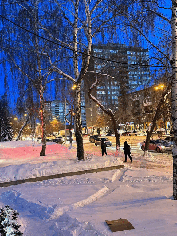 那天晚上我走在学校附近的街道上,天已经黑了,周围是一片雪白,路灯下的白桦树像一幅画。我拍下这张照片,是想记住那种宁静和安定。虽然天气冷,但我的内心却很平静,甚至有点温暖。这座城市陪我度过了很多寂寞的时刻,也让我慢慢变得更加坚强。