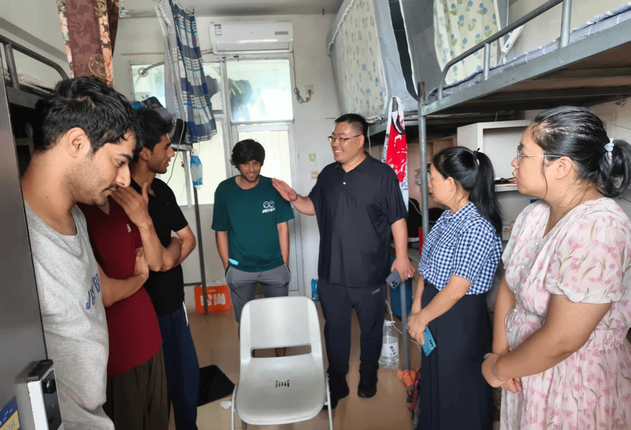 随后,学院辅导员、班主任在党总支书记于勇的带领下组成专项走访小组,排查学生宿舍安全情况。走访中,工作人员重点检查宿舍门窗玻璃是否破损、阳台护栏是否牢固、电路开关及电器使用是否正常,细致询问学生台风期间生活需求及安全状况,叮嘱学生注意雨后用电、防滑安全,及时反馈宿舍设施故障。